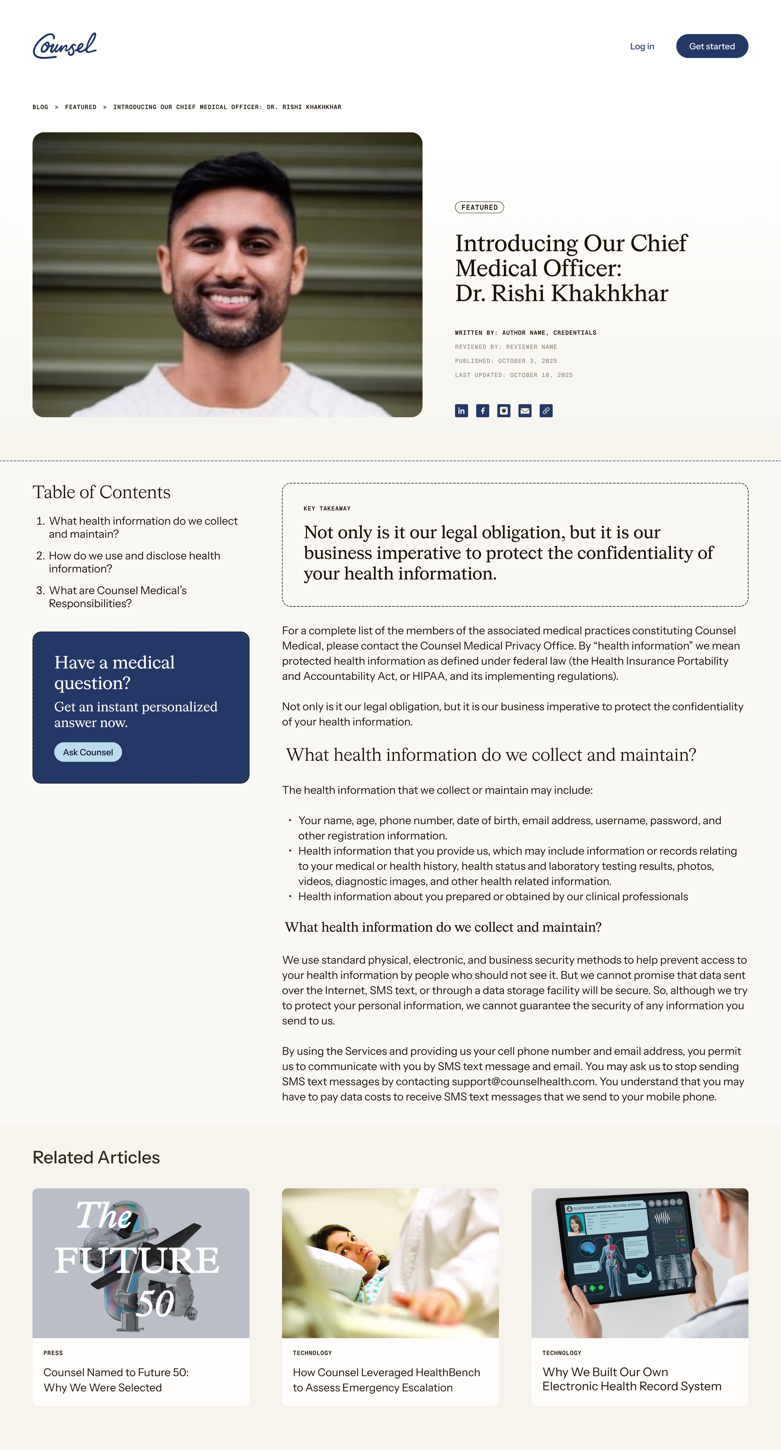 Designs for Counsel’s expert-reviewed content hub and article templates